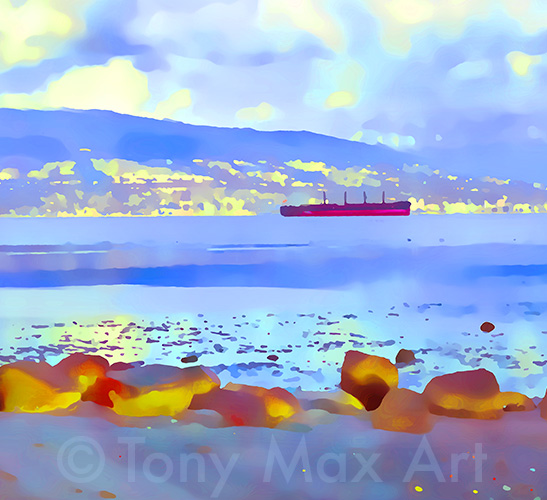 "Jericho Evening – Freighter" Museum-quality, limited edition, Vancouver art prints.