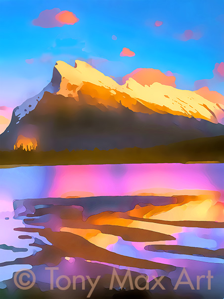 mixed media inkjet canvas Alberta art by artist Tony Max. (Banff National Park, Canada.)